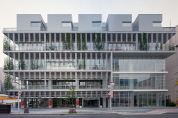 東北大学 片平キャンパスAIMR本館 本建築は、東北大学片平キャンパスの事実上の表玄関といえる北門のゲート的機能を有するものです。その建替えにあたっては、街並みを構成する歴史的な外壁を残しつつ、内部は完全に新しくするという方式が採られました。 建物本体は、オフィス棟とラボ棟から構成されていて、その二つの棟がガラス屋根の架けられたアトリウムによって接続されています。このアトリウム空間は、二棟の廊下を互いに向かい合わせにし、また二階以上を一部階段状にセットバックさせています。それにより、自然光がガラス屋根から全体に差し込む明るい空間になっており、また人の動きが水平方向にも垂直方向にも感じられる一体性活動性ある空間にもなっています。また、中庭に面している南側については壁面緑化がなされ、夏季は緑のカーテンによる日射遮蔽が意図されているなど、環境にも配慮したデザインとなっています。 このように、本建築は歴史性と機能性がうまく調和したものに仕上がっており、東北建築賞にふさわしいものと認められます。 |