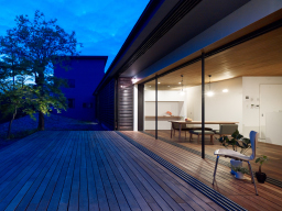冬日の家(ふゆびのいえ) この住宅は、地方都市の伝建地区の位置する住宅です。寒冷地では積雪などの理由から一般的に閉鎖的な住宅になりやすい中で、東西方向に3つの層を設定し、木製の可動間仕切りとサッシにより季節的にフレキシビリティーの高い生活空間が提案されています。特に南側に面する「使う庭」に接するサンルームとリビングは一体的な空間として計画され、冬季においても高度の低い日照を取り込んだ開放的な生活を可能にしています。また、ウォークインクローゼットを介してつながるリビングとこども部屋の機能性と回遊性、通り土間を介した客間では、庭に対して開口部を絞り視覚的なつながりと連続性を実現しています。また、無落雪を前提とした陸屋根と水平に広がる軒裏のデザイン。東北地方では珍しい焼き杉による外壁を用い、近隣の伝建地区の街並みとも関係を構築し調和を生み出しています。 多雪地域における単なる質の高い住宅の提案を越えて、通常、制約条件になりやすい雪と冬季の日照を巧みに取り込み、冬の日常的に開放的な風景を新たに生み出す設計者の手腕は、審査会においても高く評価されるともに今後の活躍が大いに期待されます。 |